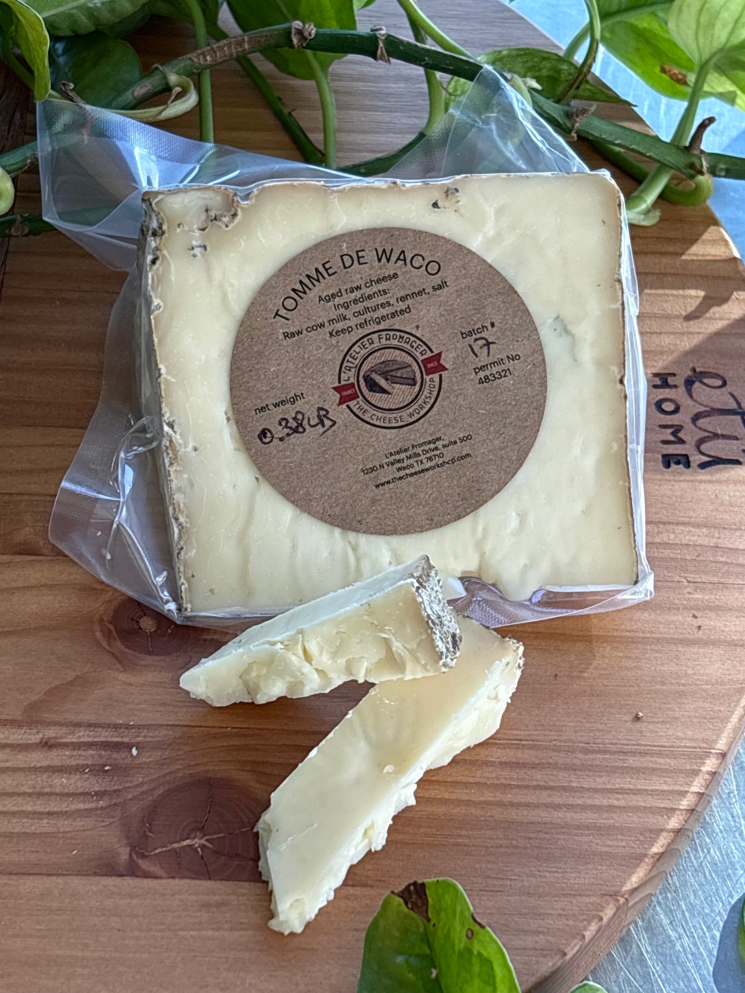 La Tomme de Waco is made in the heart of Texas, with the model of the Tomme de Savoie. The terroir is obviously very different with Texas being hotter with different plants and grass grazed by the cows. It is a modeste cheese but with a bit of taste. It will add a fruity and earthy flavor to a cheese plate, it can also be melted on bread or like a Raclette on potatoes. On a cheese plate, it pairs well with some acidic fruits, like apple, and some crunch like roasted almonds. As far as drinks, it pairs well with a dry red wine, like a Pinot noir for example. It also pairs well with an amber beer, not too sweet but not too bitter either.